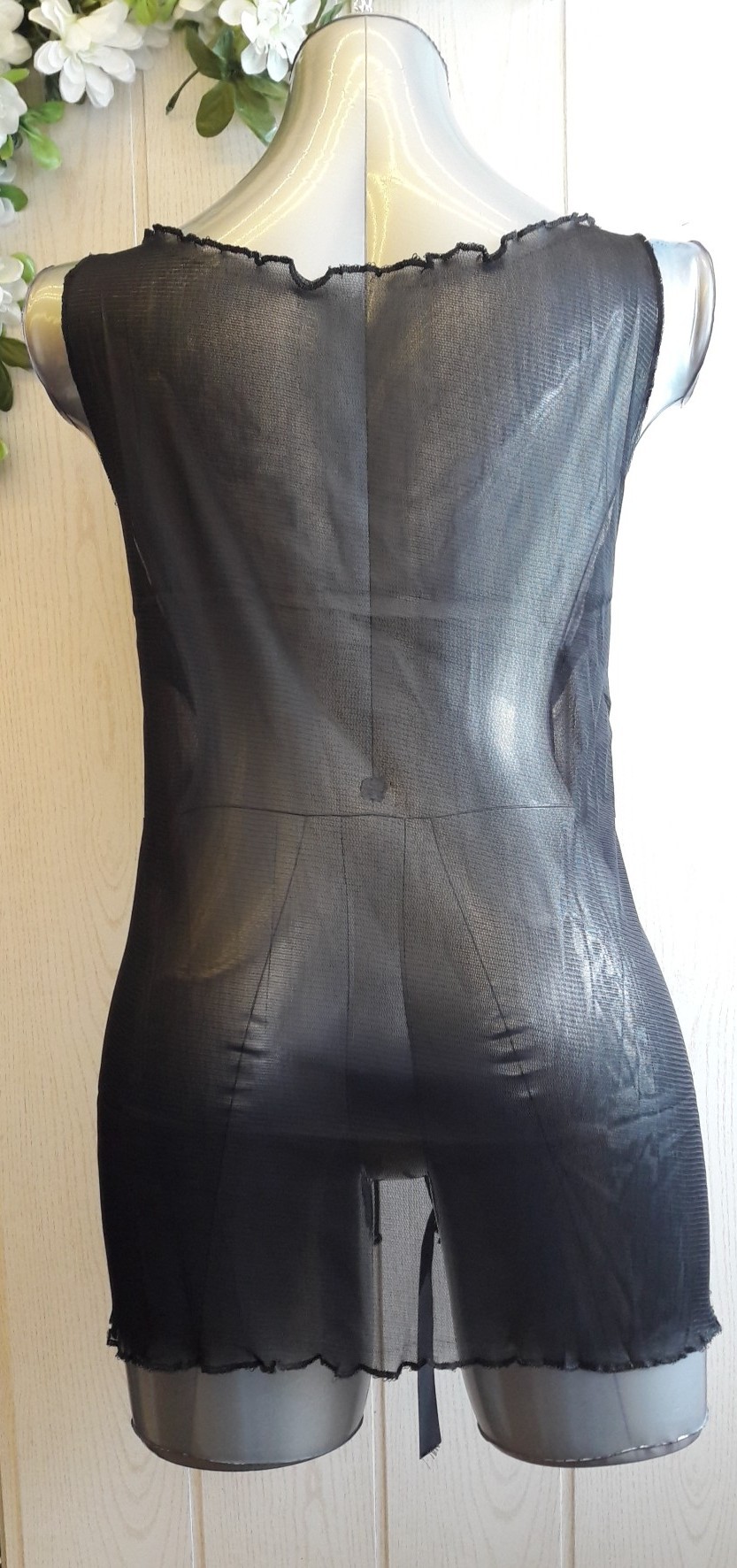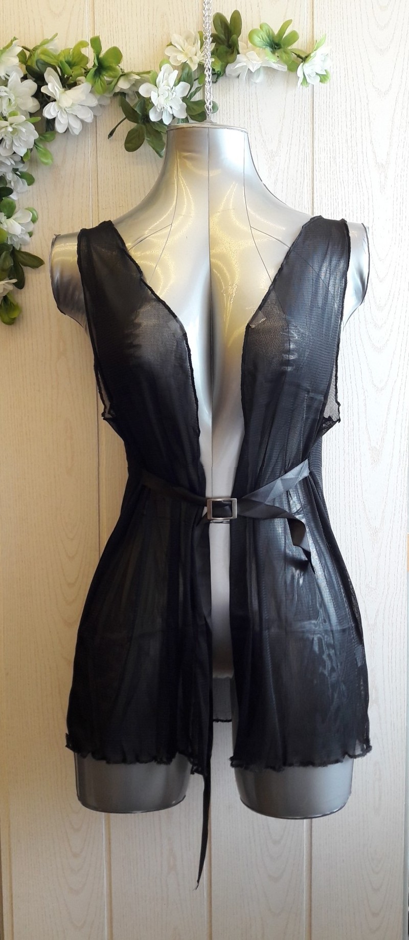 Черная полупрозрачная сорочка без рукавов. Завязывается спереди атласными летночками.
