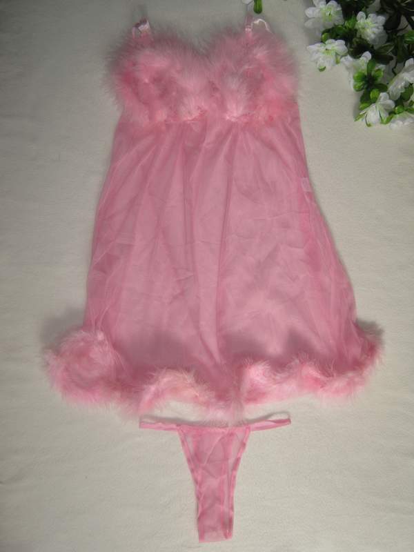Полупрозрачная сорочка нежного розового цвета. Нижняя часть и лиф сорочки украшены пухом.