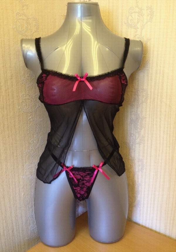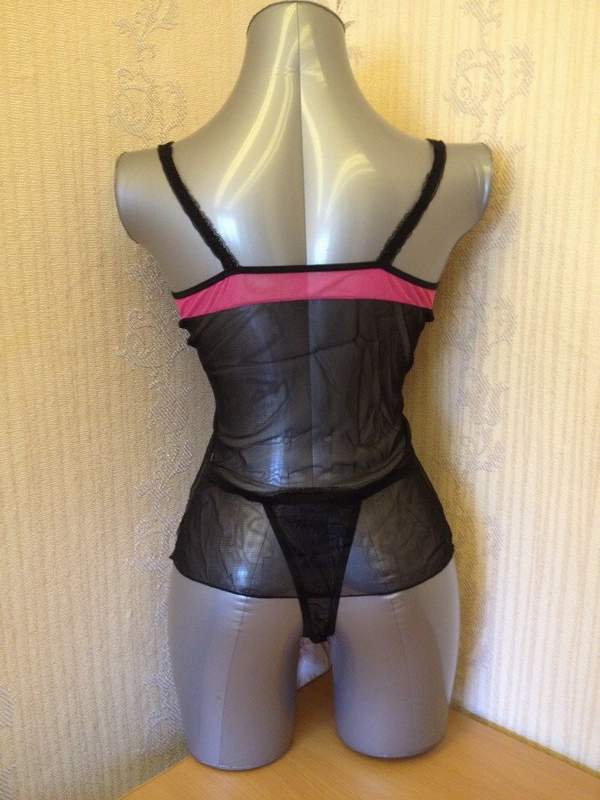 Необыкновенно эротичный комплект из черной сорочки с розовыми вставками и трусиков