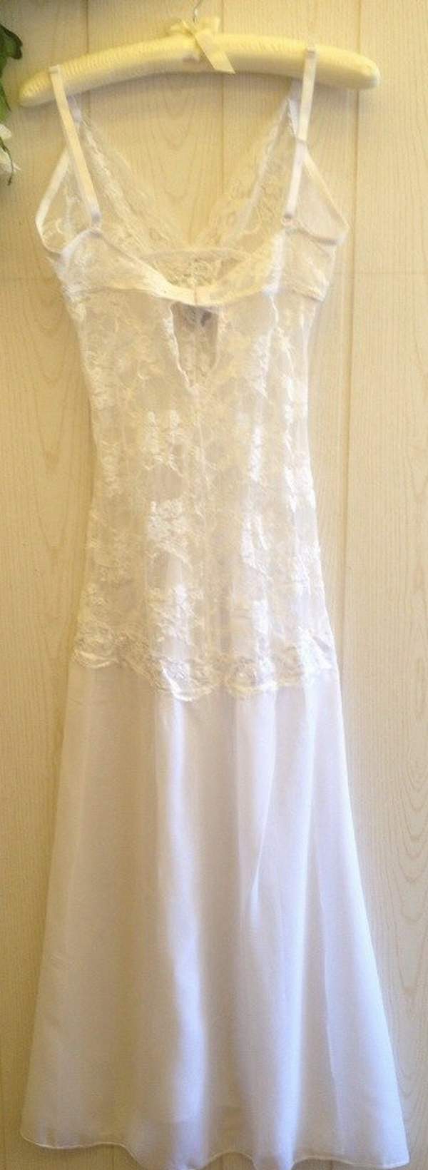 Длинная ночная сорочка деликатно подчеркивает изгибы фигуры, делая силуэт женственным и привлекательным. Верхняя часть сорочки выполнена из мягкого цветочного кружева.