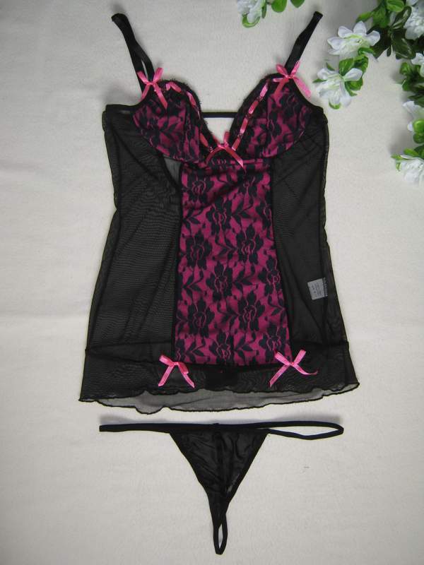 Эротическая сорочка на тонких бретельках с кружевными вставками.