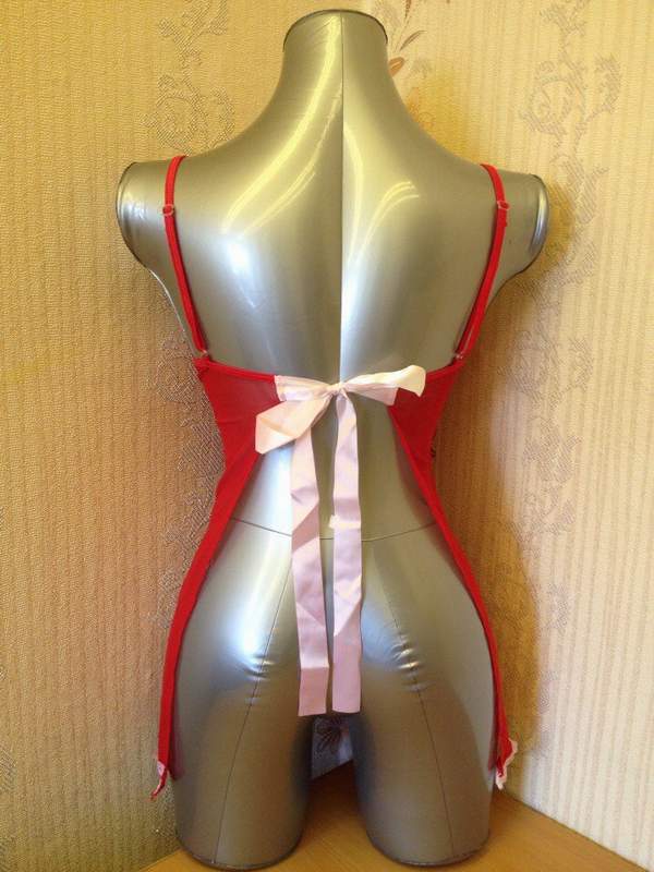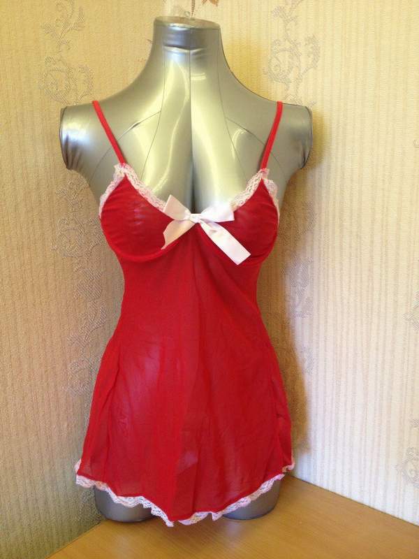 Мягкая полупрозрачная сорочка с мягким лифом на косточках. Модель урашена белой тесьмой и атласным бантиком. Сорочка завязывается сзади ленточками. Трусики на попке украшены кружевным сердцем