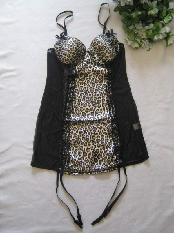Обтягивающая сорочка из сетчатого материала с поролоновые чашечками. Леопардовый принт удачно дополняет модель.