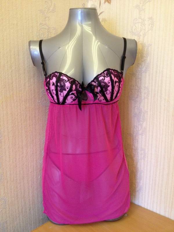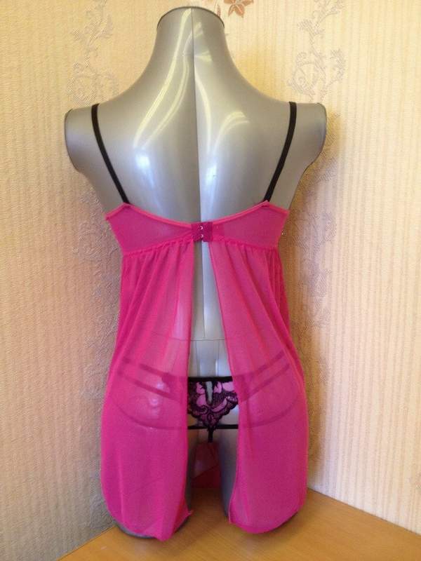 Эротичная сорочка из нежной мягкой сетчатой ткани. Лиф сорочки украшен контрастной вышивкой. На спине застежка и соблазнительный разрез. В комплекте оригинальные трусики.