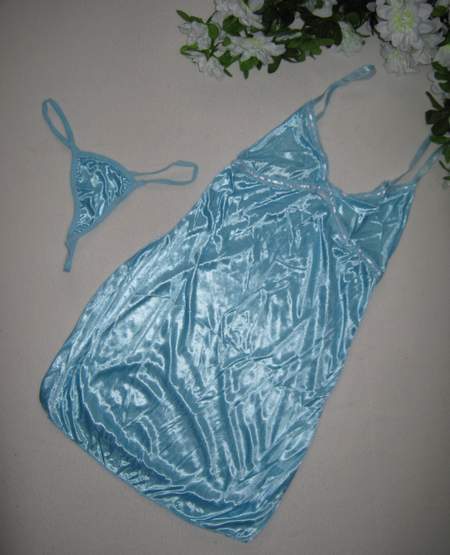 Короткая сорочка на лямках. В комплекте трусики-стринги.