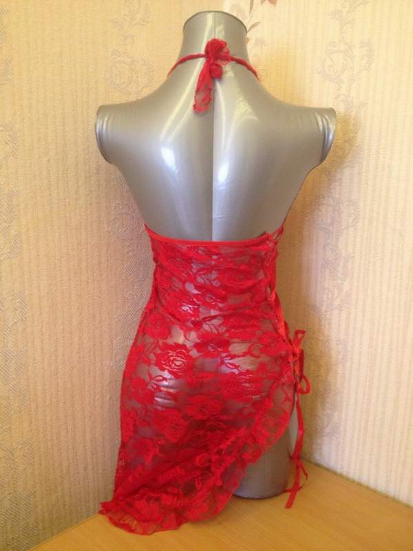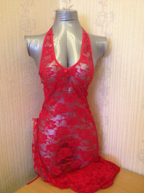 Красивая сорочка из стрейч-кружева с цветочным рисунком. Модель выглядит очень соблазнительно за счет шнуровки сбоку, которая находит свое продолжение в элегантном разрезе, позволяющем продемонстрировать изящные ножки.