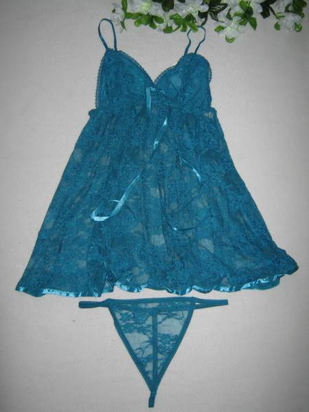 Короткая сорочка с цветочным узором. В комплект входят трусики-стринги.