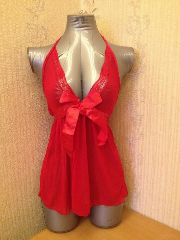 Элегантная и женственная ночная сорочка выполнена в красном цвете. Лиф сорочки украшен кружевои и большим атласным бантом.