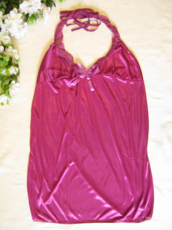 Ночная сорочка выполнена из мягкого атласного материала, завязывается на шее кружевными лямочками.