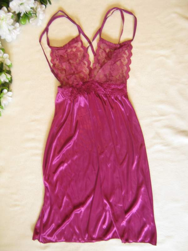 Мягкая атласная сорочка с кружевным лифом и перекрещивающимися лямочками.