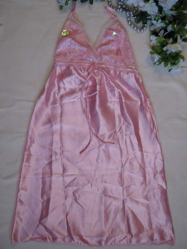Длинная сорочка нежного цвета с оригинально украшенным лифом