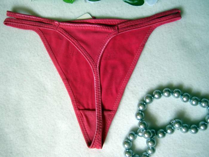 Розовые трусики-стринги с опликацией из страз ввиде двух сердец