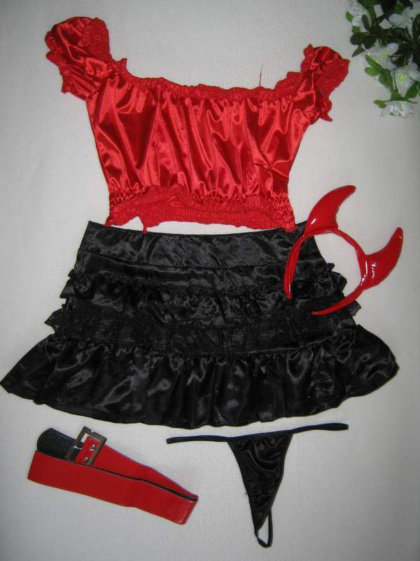 Комплектация: юбка, топ, трусики, пояс, рожки