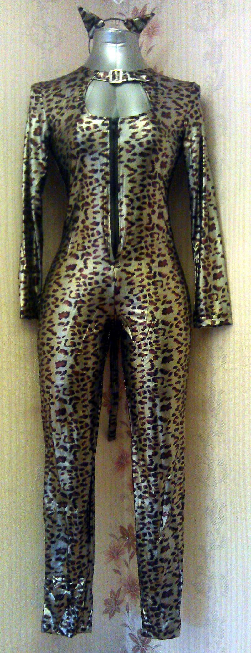 Соблазнительный комбинезон кошечки звериной расцветки с хвостом. Комбинезон спереди на молнии. Ушки в комплекте.