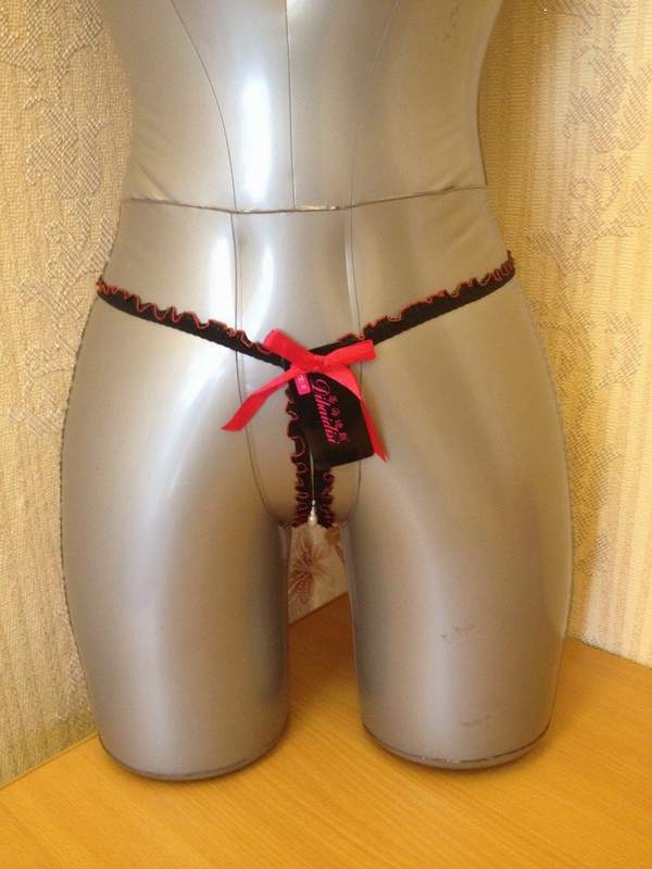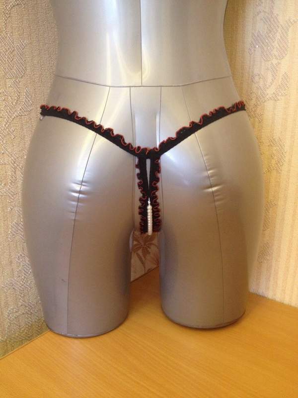 Откровенные трусики с разрезами и бусинами.
