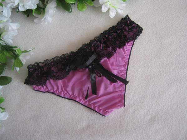 Трусики с ажурной черной вставкой, украшенные тонкими атласными бантиками.