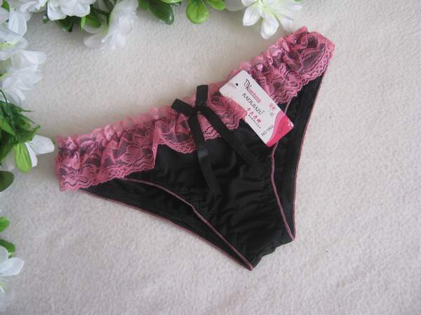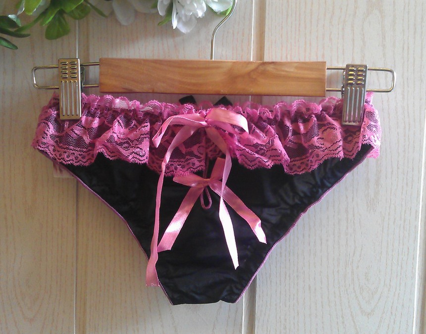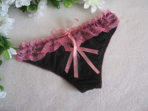 Трусики с ажурной розовой вставкой, украшенные тонкими атласными бантиками.
