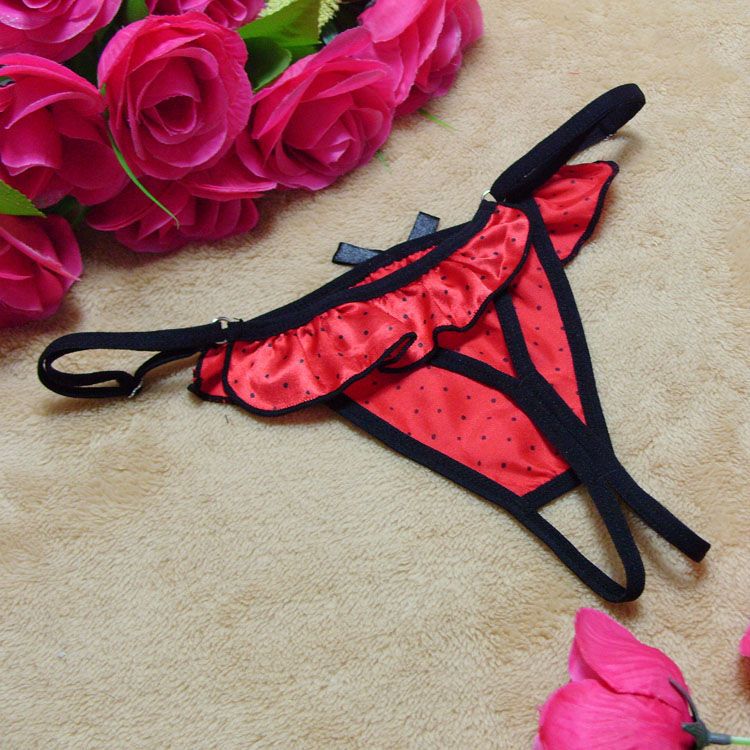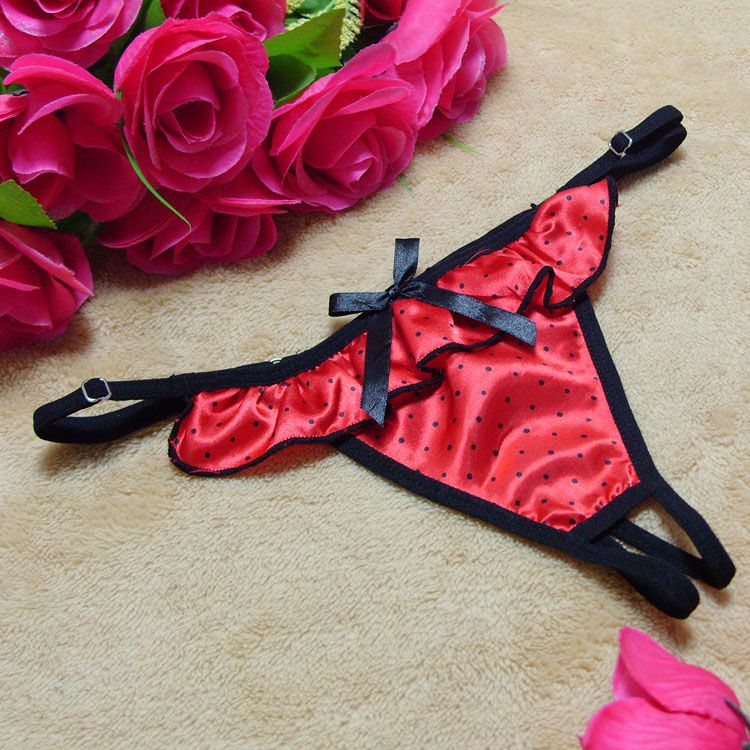 Яркие атласные трусики в горошек. Ширина трусиков регулируется.