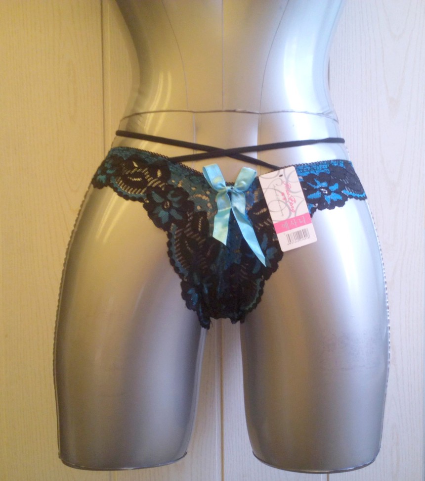 Трусики выполнены из черно-синего кружева и украшен синим бантиком спереди. Выпускаются в размере от XS-M