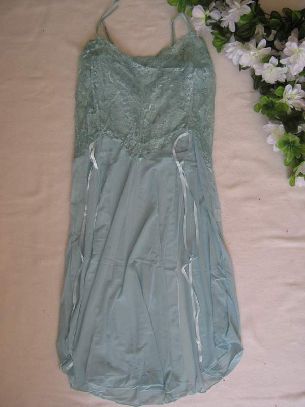 Удлиненная ночная сорочка на тонких бретельках выполнена из мягкого сетчатого материала, а верхняя часть сделана из полупрозрачного кружевого с цветочным узором.