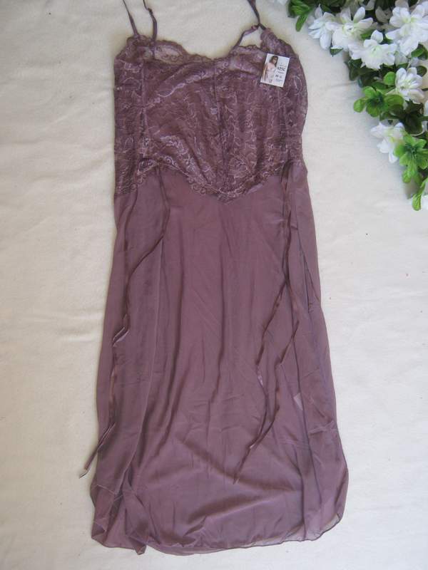 Удлиненная ночная сорочка на тонких бретельках выполнена из мягкого сетчатого материала, а верхняя часть сделана из полупрозрачного кружевого с цветочным узором.