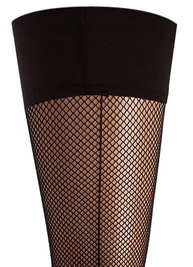 Элегантные эластичные чулки в мелкую сеточку с имитацией шва по ноге с гладкой резинкой на силиконовой основе, с укрепленным мыском.