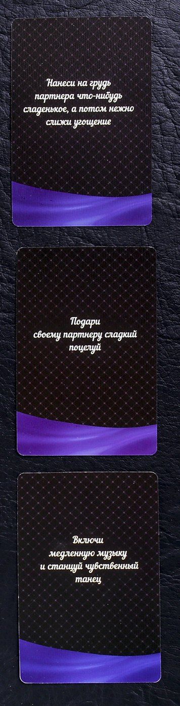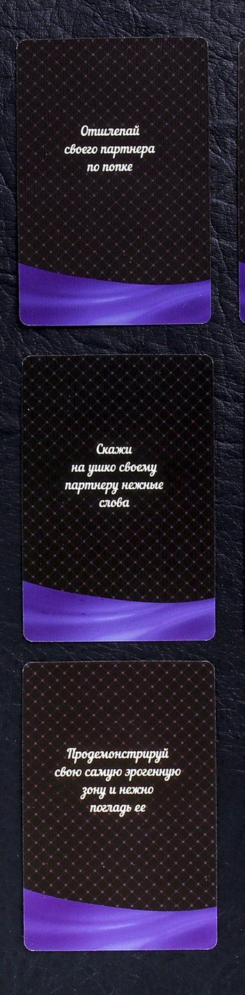 Разложите карты по цвету в две стопки рубашкой вверх. Игру начинает дама. Она спрашивает у своего мужчины: «Отвечай или выполняй?». Если он выбирает первый вариант, она тянет карточку с вопросом, если второй — с заданиями. Затем партнёрша делает то, что указано на карте. Если она справилась, то оставляет карточку у себя, а ход переходит к мужчине. Игра продолжается, пока карты не закончатся. Победителем становится тот, кто набрал их больше всего, но самое главное — получить удовольствие!