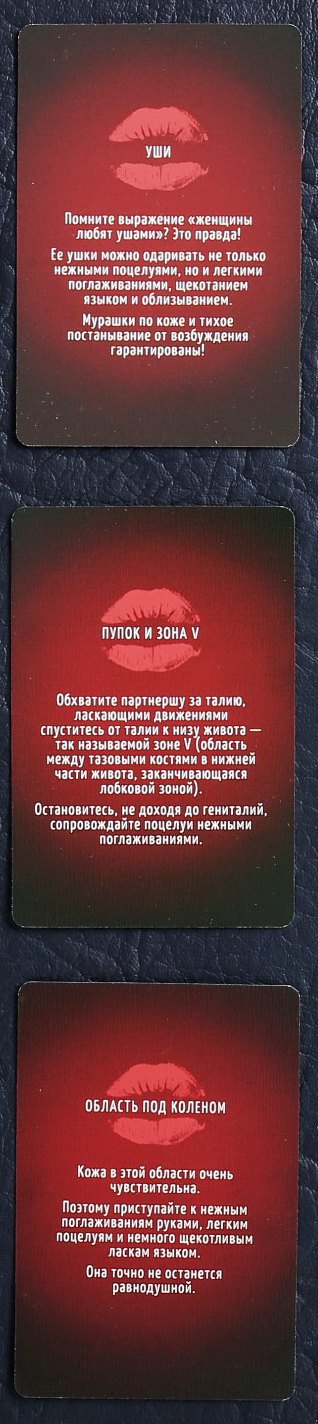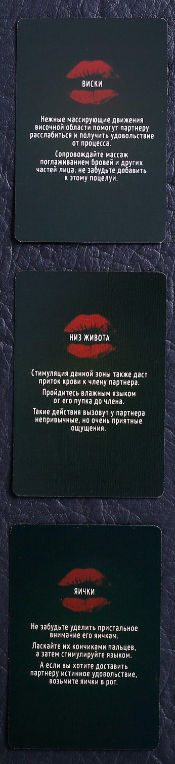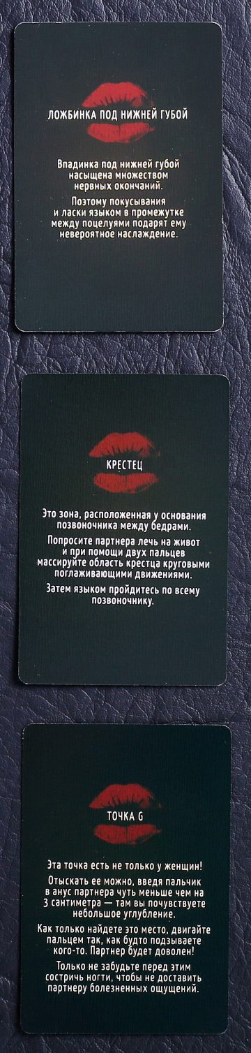 Определите, с чего вы начнёте игру: с изучения её или его эрогенных зон. Вытяните карточку и воспроизводите то, что там указано.