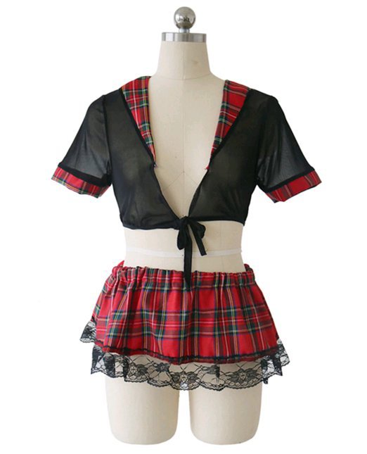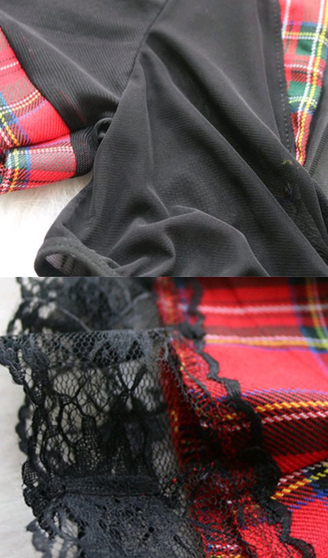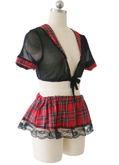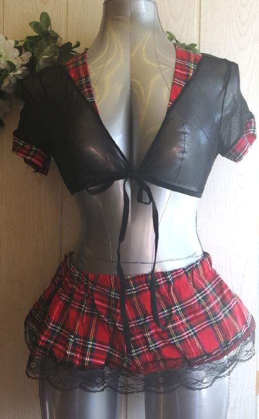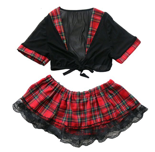 Комплект состоит из юбочки, по низу которой пропущено кружево. Юбочка сидит на талии или на бедрах на Ваш выбор. Также в комплект входит эластичный топ без косточек.