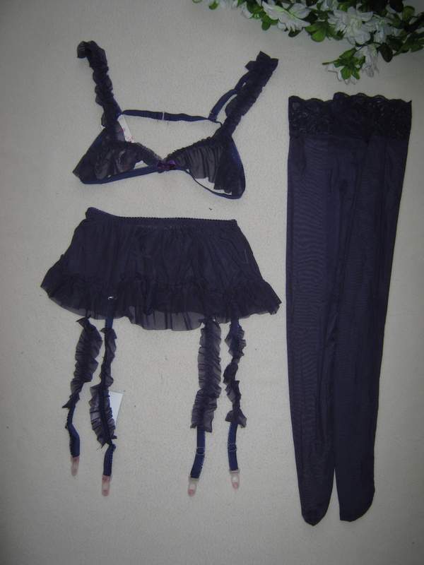 Мягкий эротический комплект с открытой грудью выполнен из мягкой сетчатой ткани