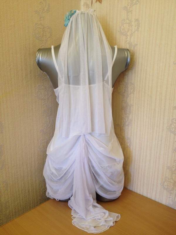Комплектация: платье, фата, подвязка, перчатки, трусики, заколки-цветочки