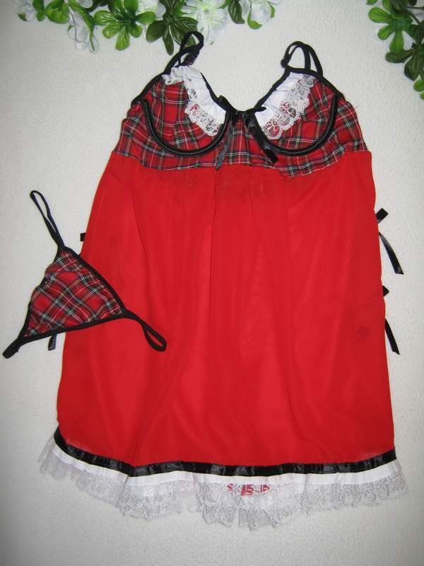 Яркое красное платье на молнии. Лиф на косточках выполнен из клетчатой ткани и украшен кружевом.