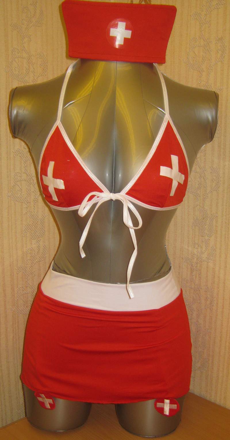 Эластичный игровой комплект красного цвета. Юбочка с подвязками для чулок.