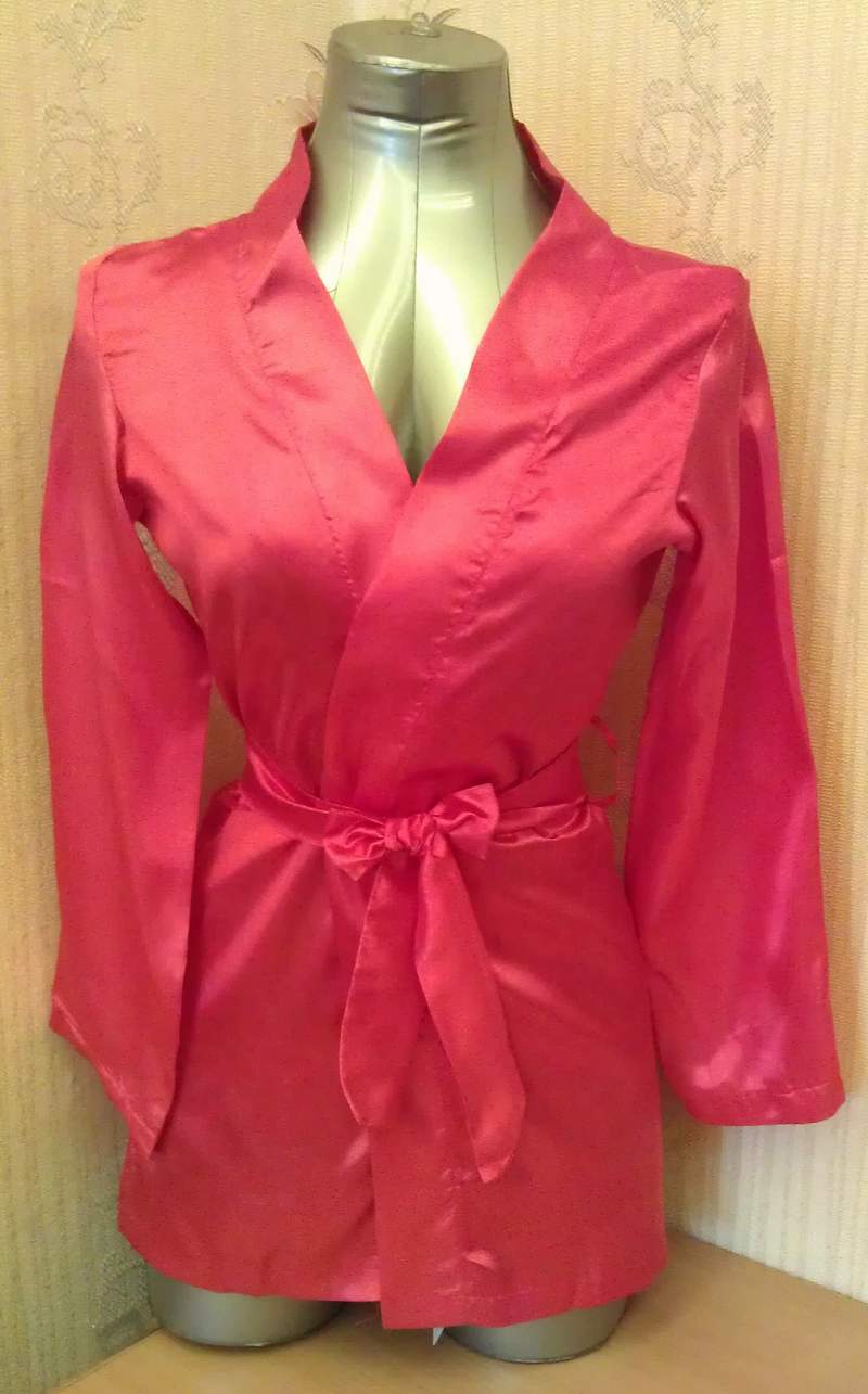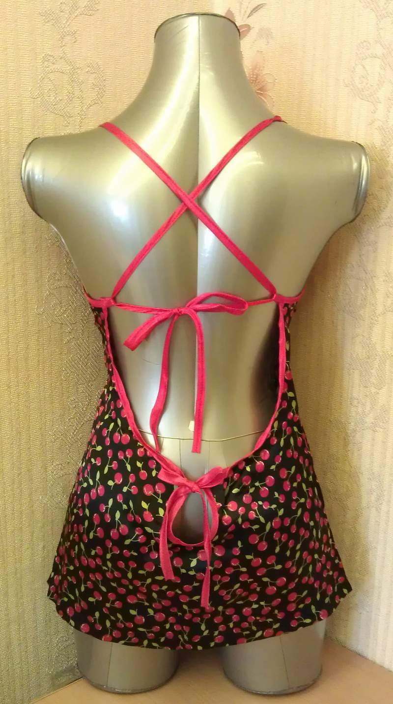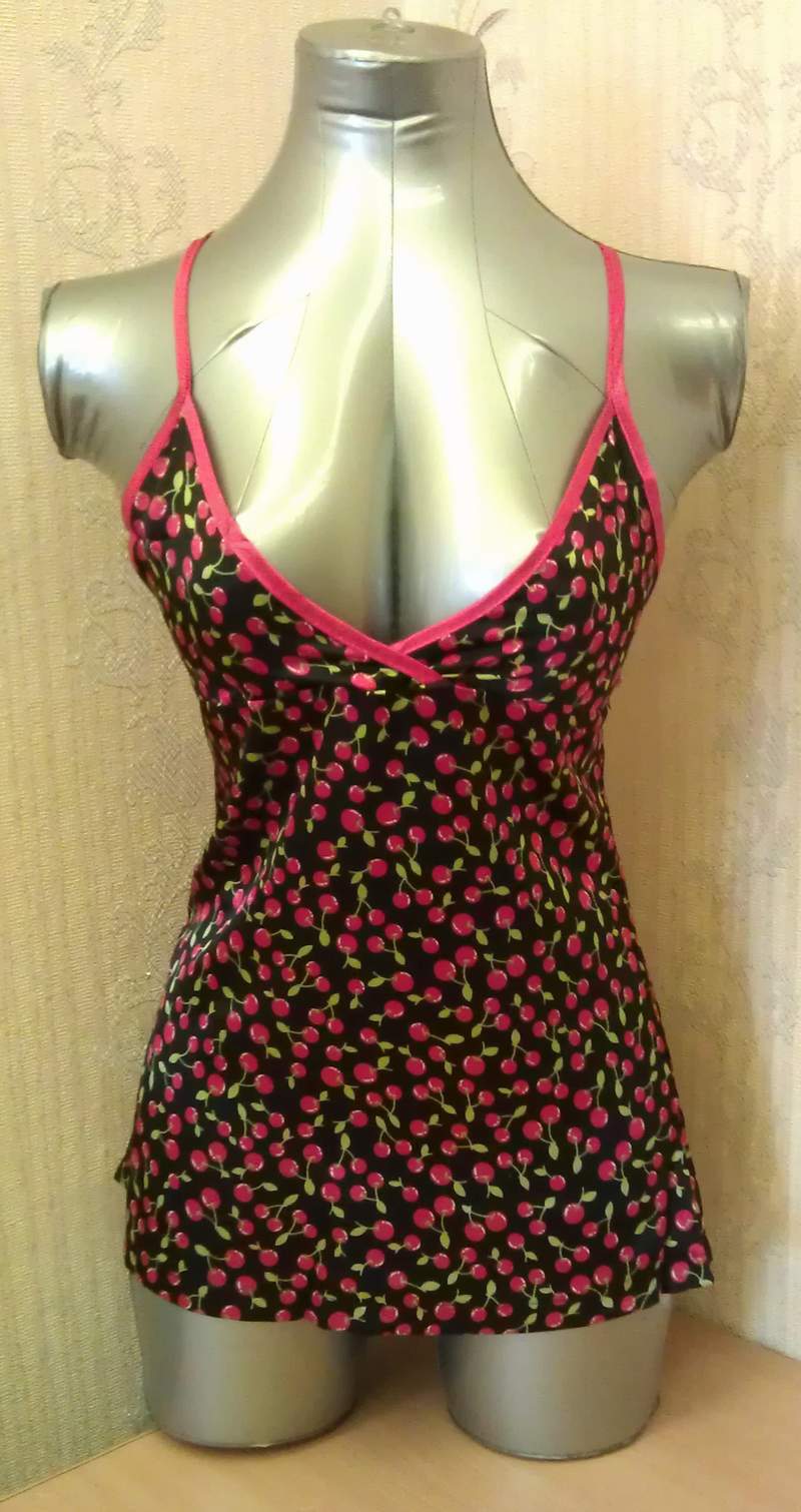 Сочный комплект из яро-красного пеньюара и короткой сорочки с рисунком из вишенок.