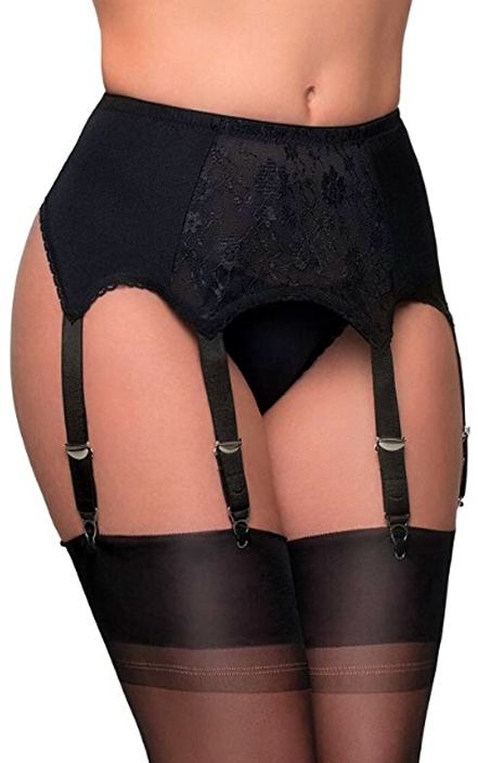 Пояс для чулок выполнен из эластичной ткани. Аксессуар декорирован кружевной вставкой в тон. Сзади бельевая застежка.