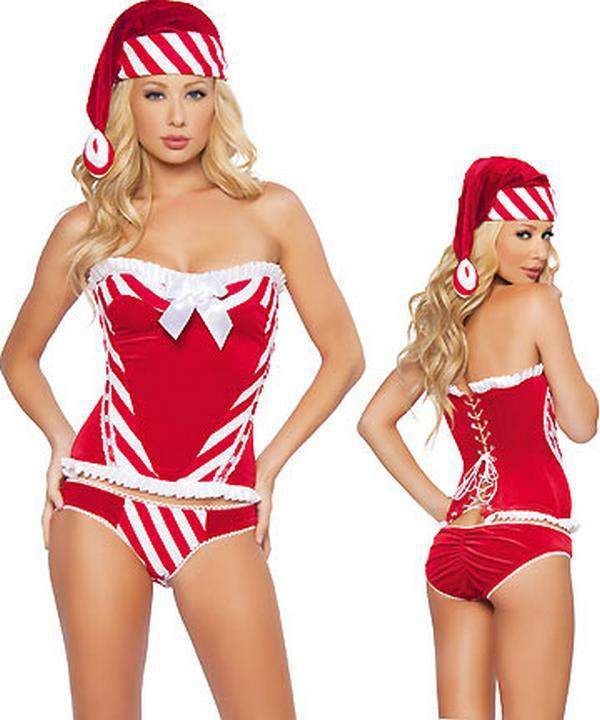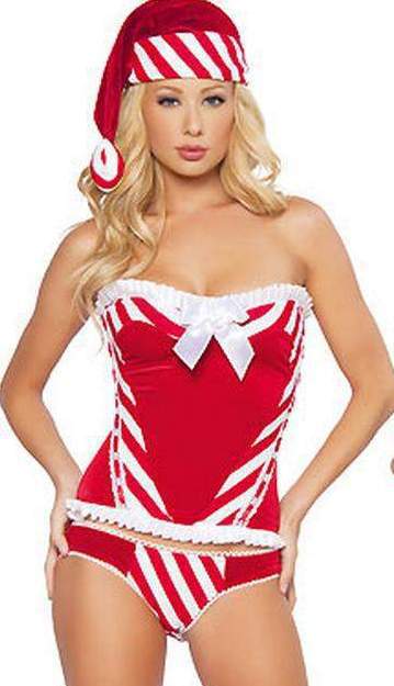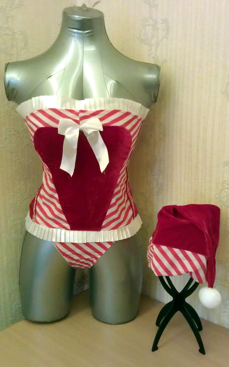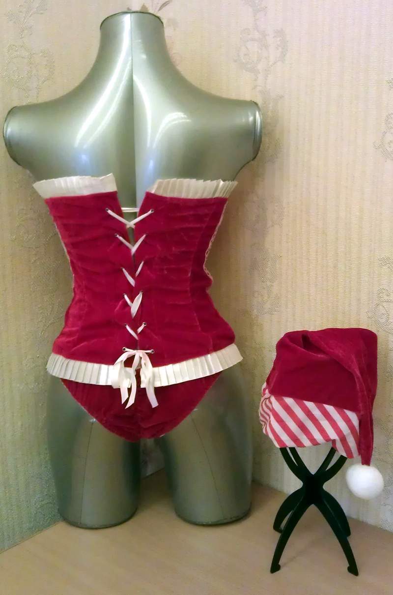 Бархатный новогодний комплект состоящий из топа, колпака и трусиков.