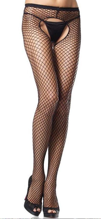 Сетчатые колготки с разрезом в интимной части.