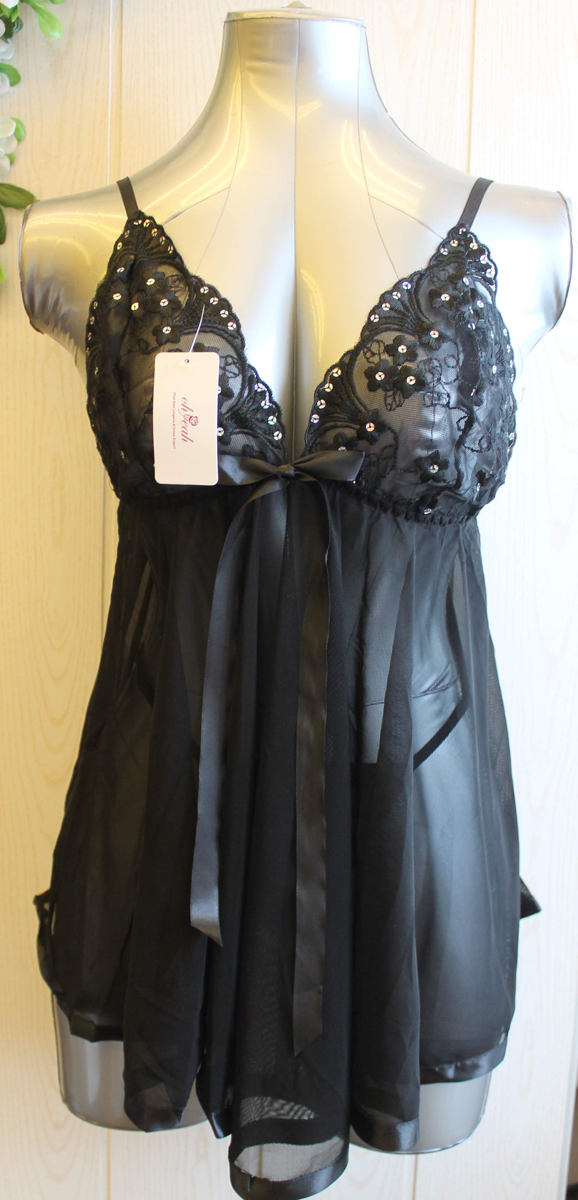 Сорочка выполнена из мягкой полупрозрачной микросетки и кружевом в области лифа. Под грудью эластичная резинка, чашечки мягкие, без косточек. Модель выпускается в размерах L-XL, 2XL, 3XL, 4XL, 5XL, 6XL